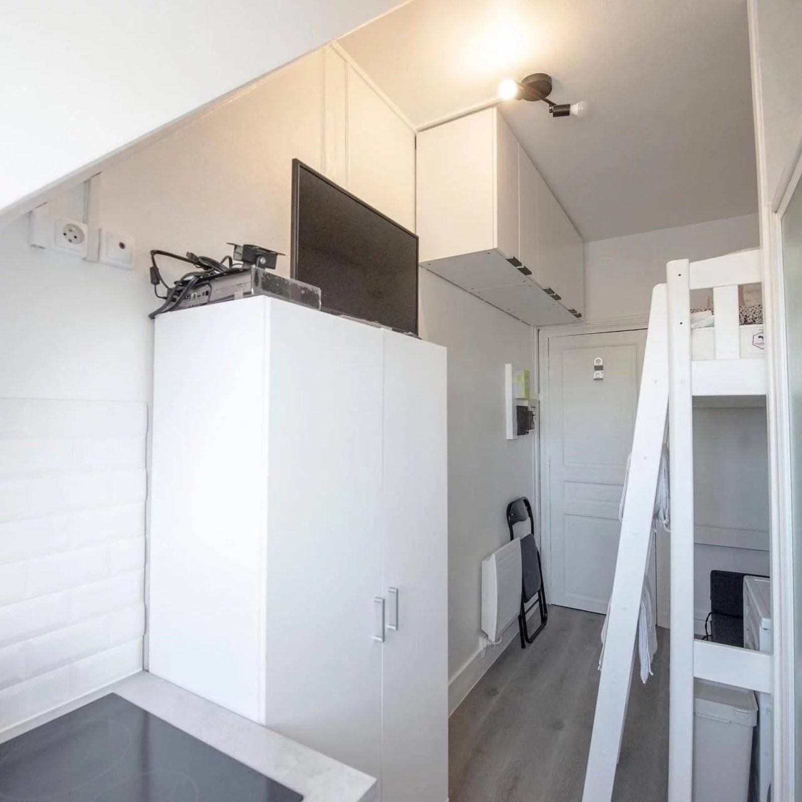 Paris (75016)Petit studio tout équipée. Refait a neuf en 2024. Cuisine, lave lange séchant, l'internet. 7eme étage sans ascenseur.