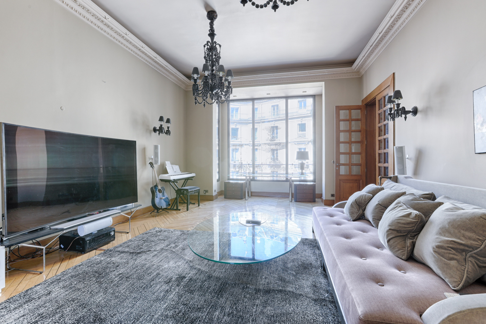 Paris (75016)PARIS XVIème. Entre la Place d'Iéna et la Place du Trocadéro, au 3ème étage d'un magnifique immeuble en pierre de taille de grand standing avec gardien à demeure et parties communes de grande qualité, Triangle d'Or vous présente un somptueux appartement entièrement rénové, meublé et équipé d'une surface de 300,11 m2 et ses annexes : 2 chambres de service, une double cave, une place de stationnement en extérieur.