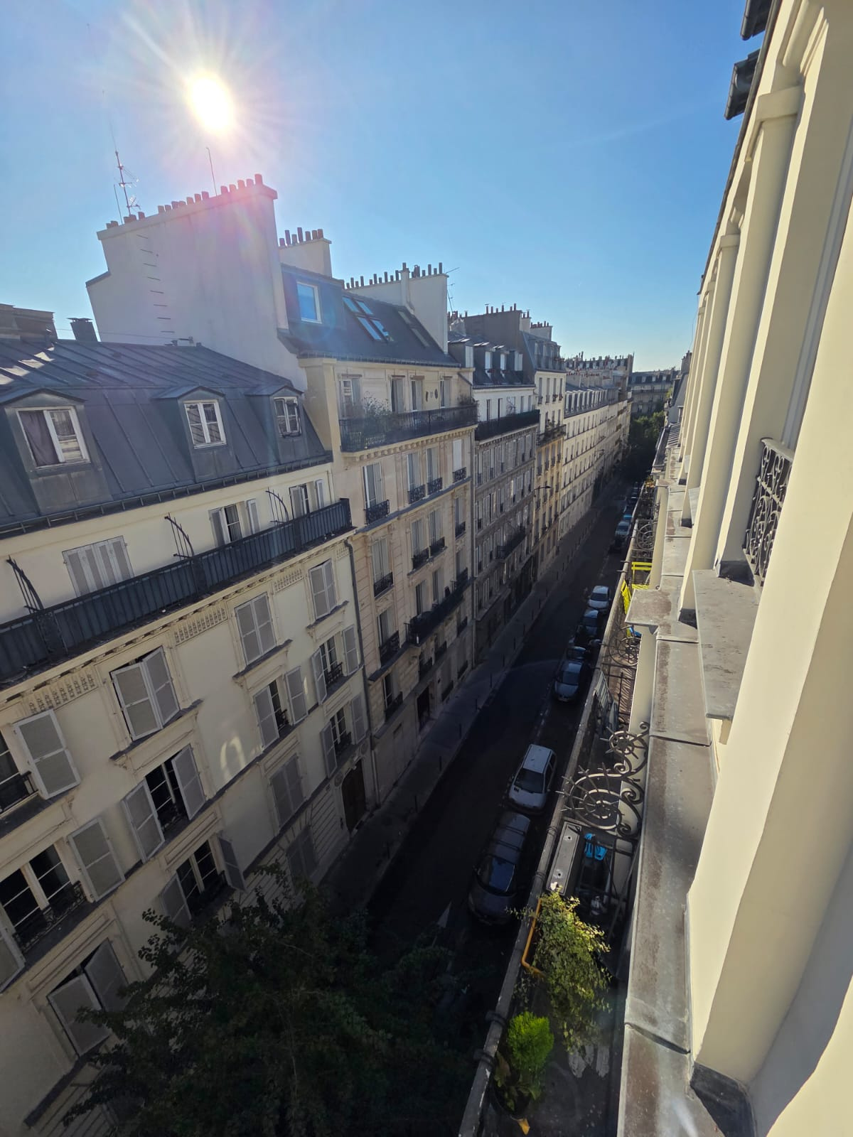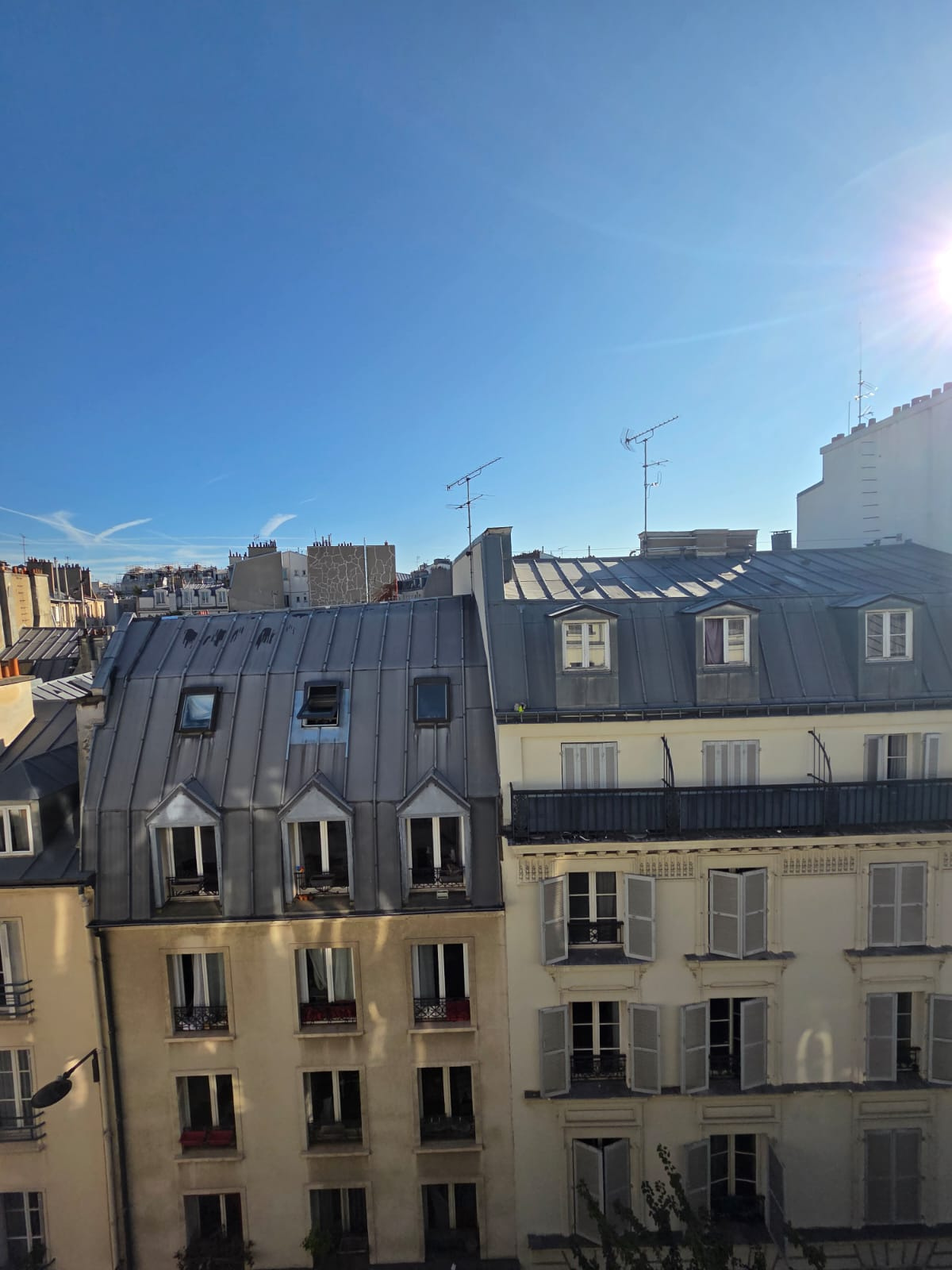 * un séjour / chambre avec 2 grandes fenêtres en double vitrage, vue dégagée sur les toits parisiens !