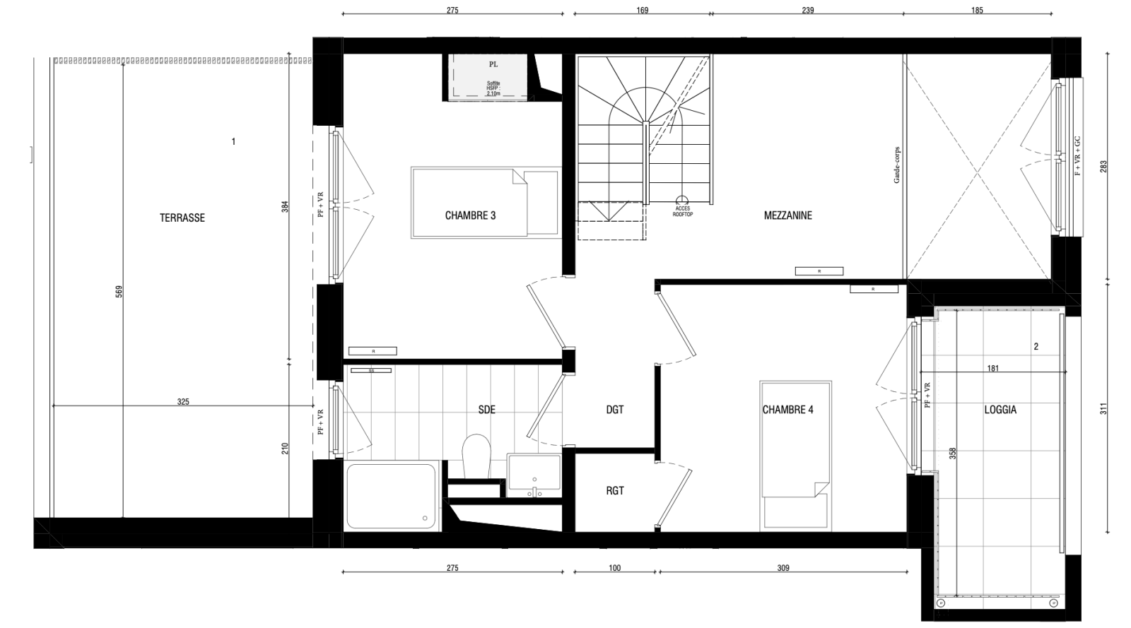 T5 en TRIPLEX avec deux loggias, deux terrasses dont une en ROOFTOP.