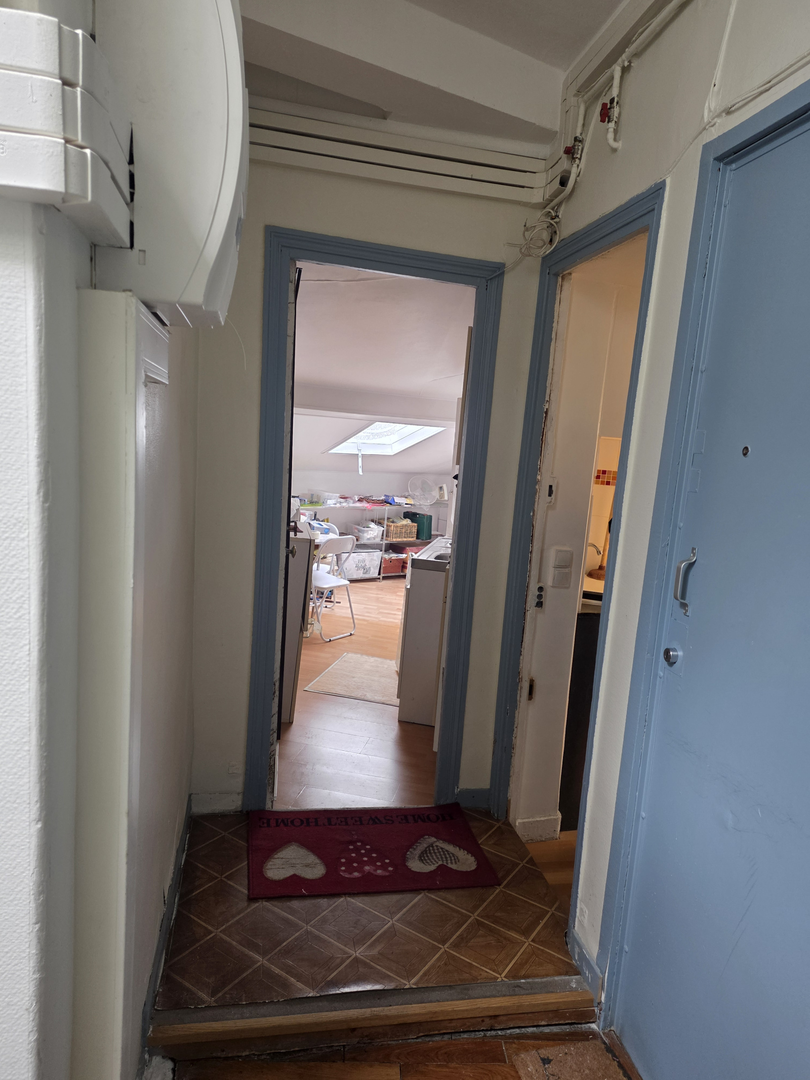 Avenue de Saint-Ouen - Chambre de 8,50m² Carrez (21m² au sol) au dernier étage de l'immeuble par escalier.