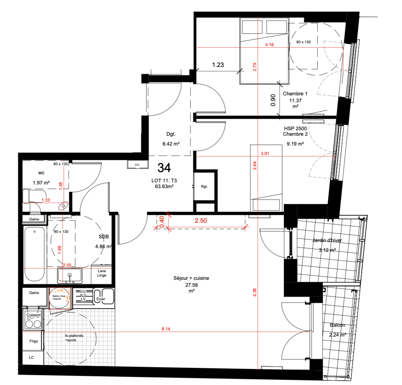 T3 au 3ème étage avec balcon et jardin d’hiver.