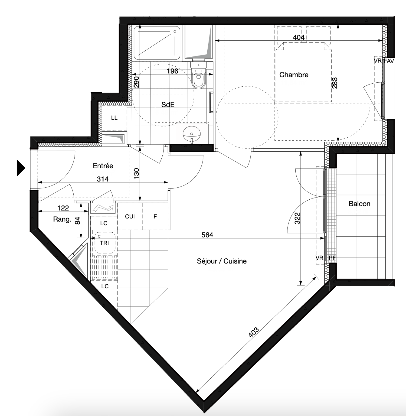 Arcueil (94110)Au 3ᵉ étage, cet appartement 2 pièces offre une surface habitable de 46,24 m². Il se compose d’une entrée (4,08 m²), d’un séjour avec cuisine ouverte (23,38 m²), d’une chambre (11,84 m²), d’une salle d’eau (5,69 m²) et d’un espace de rangement (1,25 m²). Un balcon de 3,62 m² vient compléter le bien.